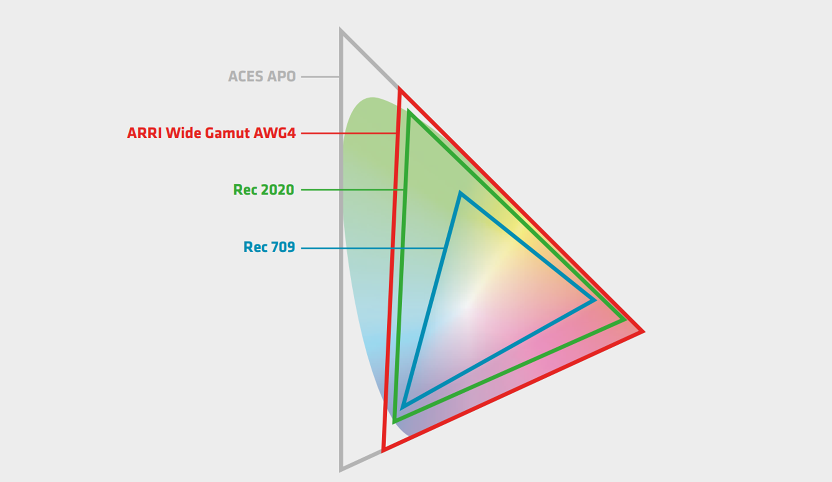 Along with the new sensor is ARRI’s new REVEAL Color Science—an umbrella term covering a new image processing workflow and new color capabilities within the ALEXA 35 sensor. There is a new color space that is wider than Rec2020, titled ARRI Wide Gamut AWG4 . This color space allows users to capture highly saturated, pastel-colors that are normally harder to render in traditional color spaces. ARRI refers to the color space as being "Goldilocks" sized; that is large enough to capture new colors, but nimble enough to leave out "virtual" colors, which would not find accurate representation on any current monitor or display anyway.